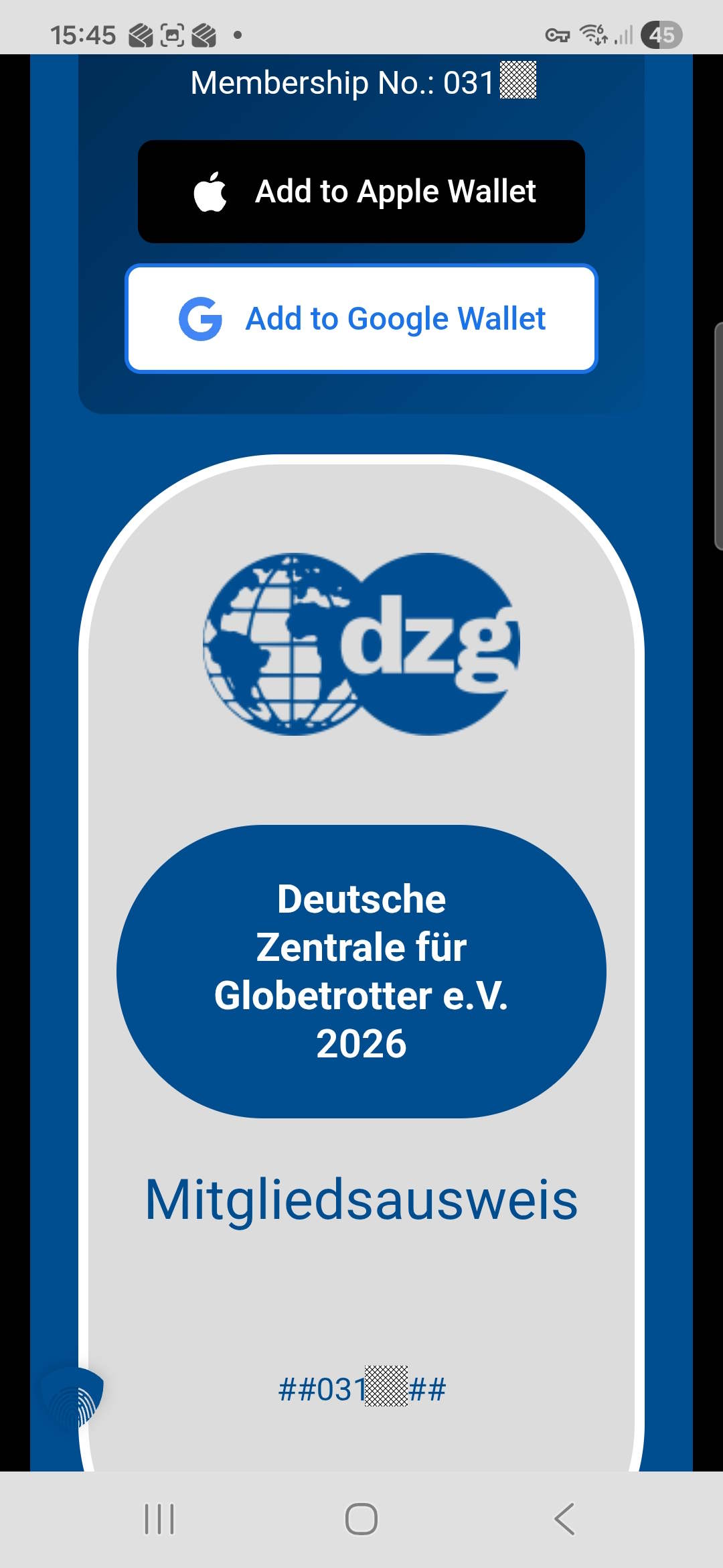Oben auf der Seite findest du zwei Buttons: einen für Apple-Geräte und einen für Google/Android-Smartphones. Wähle einfach die passende Option für dein Smartphone aus und bestätige, dass du den Ausweis in dein Wallet übernehmen möchtest. Schon ist alles erledigt – dein Mitgliedsnachweis ist digital auf deinem Handy verfügbar.