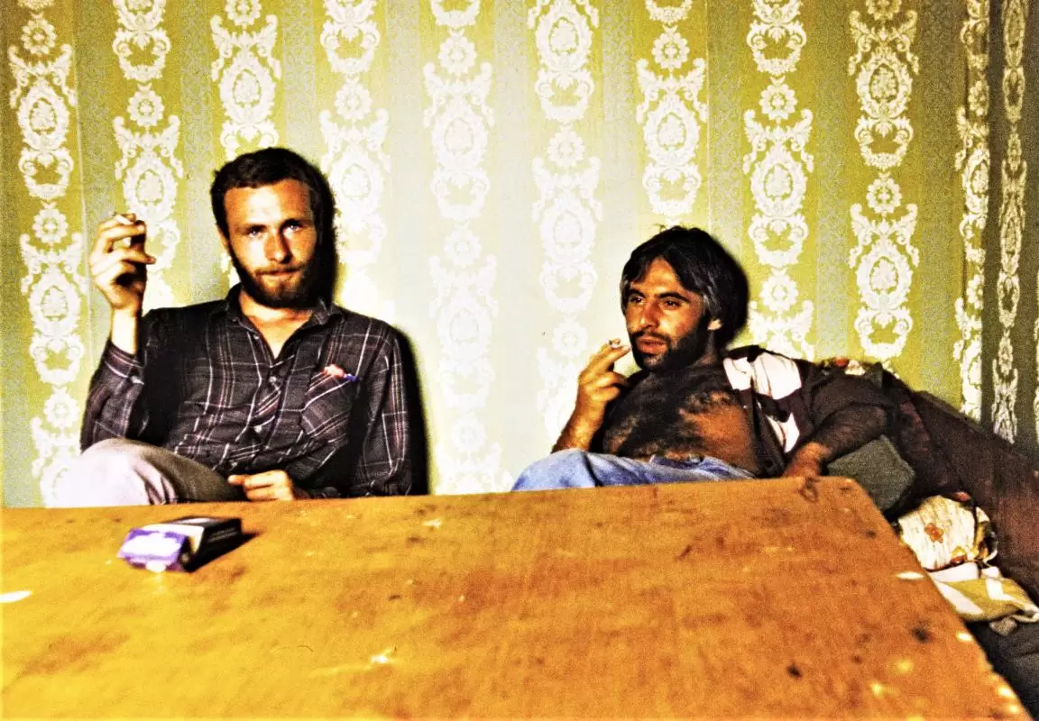 Aurimas trieb es noch ärger. Wir suchten einen wirklich schmierigen Typen in einer verkommenen Bruchbude auf, der aus einer labormäßigen Apparatur irgendwelches chemisches Zeug destillierte. Aurimas bezahlte ein paar Rubel dafür und spritzte es sich in die Vene. Zwei, drei Stunden lang konnte er halbwegs unter uns bleiben, dann war er außer Gefecht gesetzt. Es ging ihm augenscheinlich derart dreckig, dass ich bis zum heutigen Tag den allergrößten Respekt vor derartigen Selbsterfahrungsversuchen habe. Noch am nächsten Tag hing er durch. Vor allem aber verpasste er, dass jetzt endlich Lewan Lomidse und dessen Freund Gogi Margischwili eintrafen. Beides Architekten und etwa in meinem Alter, waren wir uns sofort sympathisch.